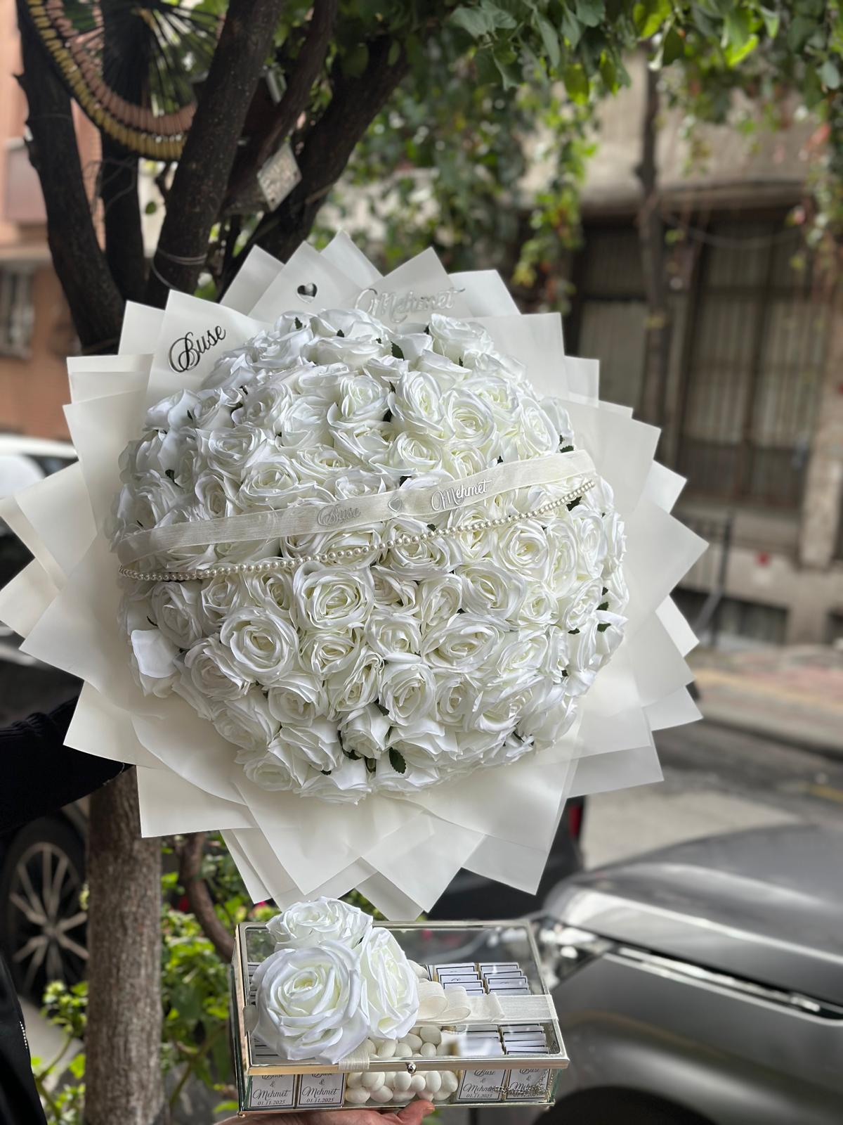 101 beyaz gül buketi